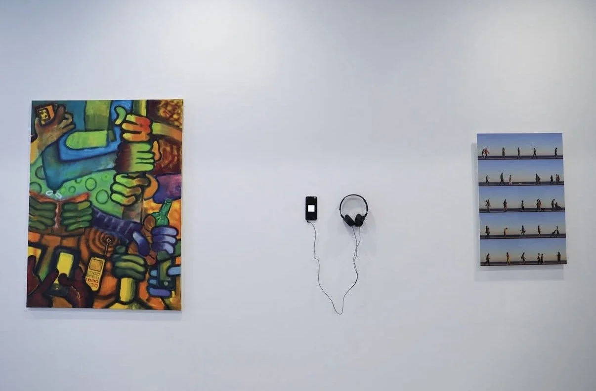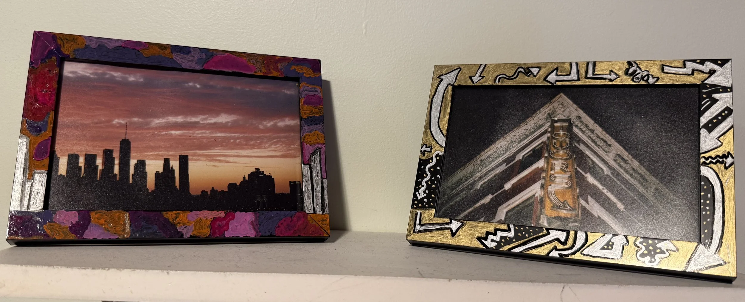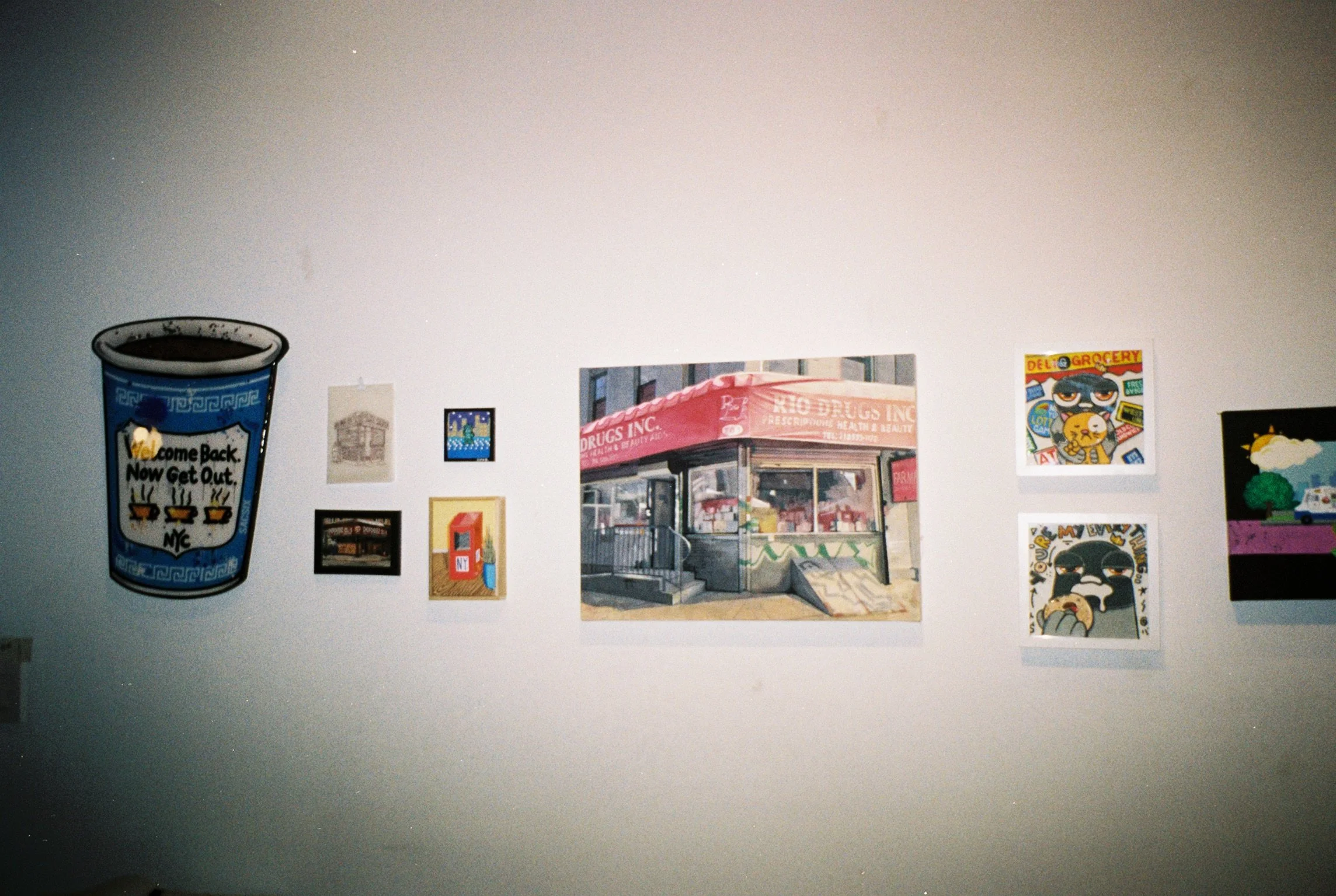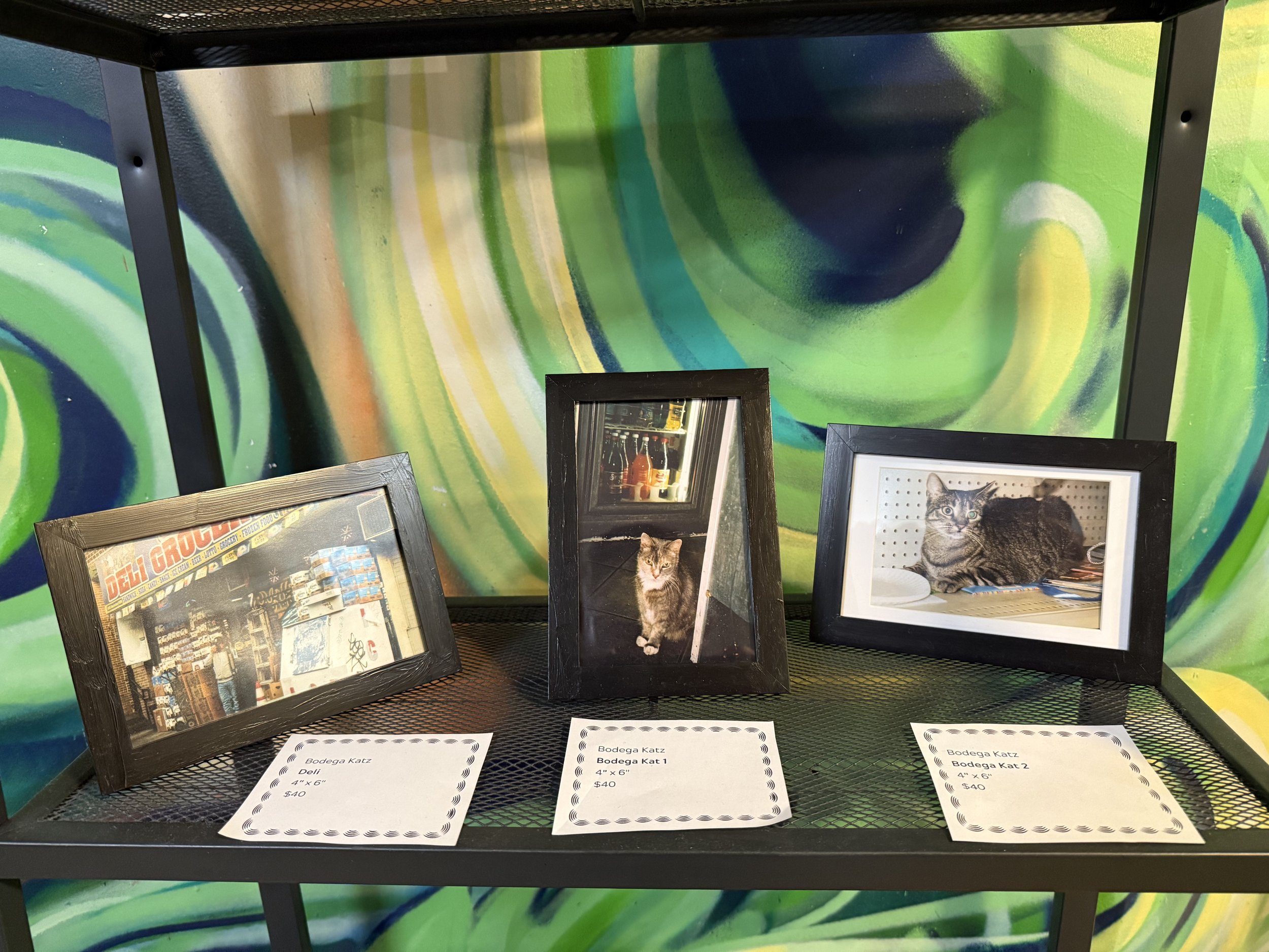 Curated by Edy Castro, Bodega Katz displayed five works at La Fleur Cafe in the East Village. Two works included photos accompanied by frames that were customized by hand with paint pen.
