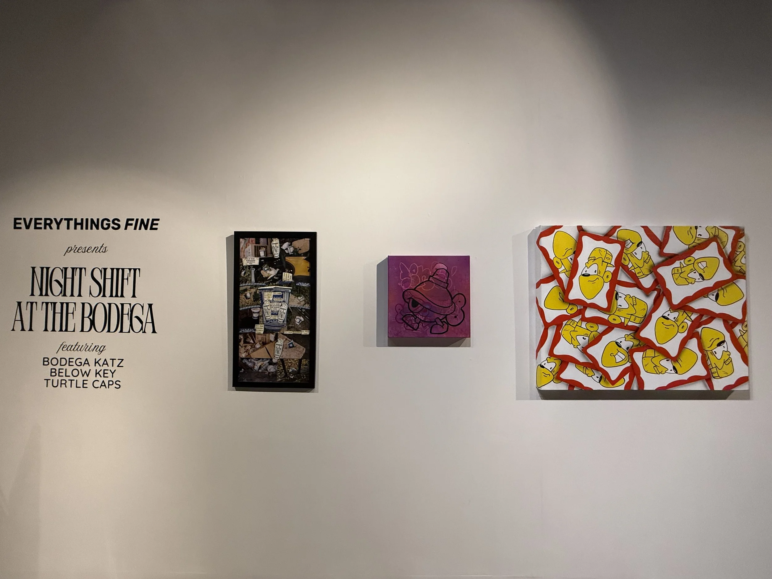 Featuring Bodega Katz, Turtle Caps, and Belowkey on view at Everything’s Fine Vintage on the Lower East Side of Manhattan. The exhibition included photographs and paintings that accompanied a curated vintage fashion collection.